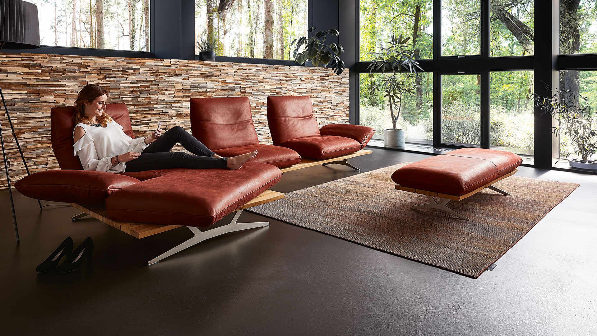 Для изменения сиденья этой мягкой мебели вращаются на 360° и также могут скользить в сторону. Основание из массива дерева, поддерживаемое элегантными ножками, придает дивану оттенок невесомости.