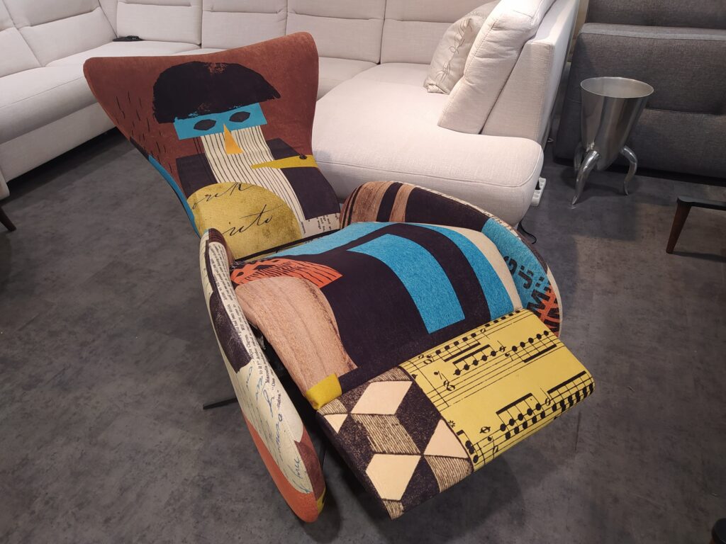 Кресло реклайнер Mondrian в оригинальном, выразительном дизайне. Очень легкое по форме, кресло эргономично адаптируется к форме тела и обеспечивает высочайший уровень комфорта. Выполнено в ткани Picasso из коллекции Arty Edition.