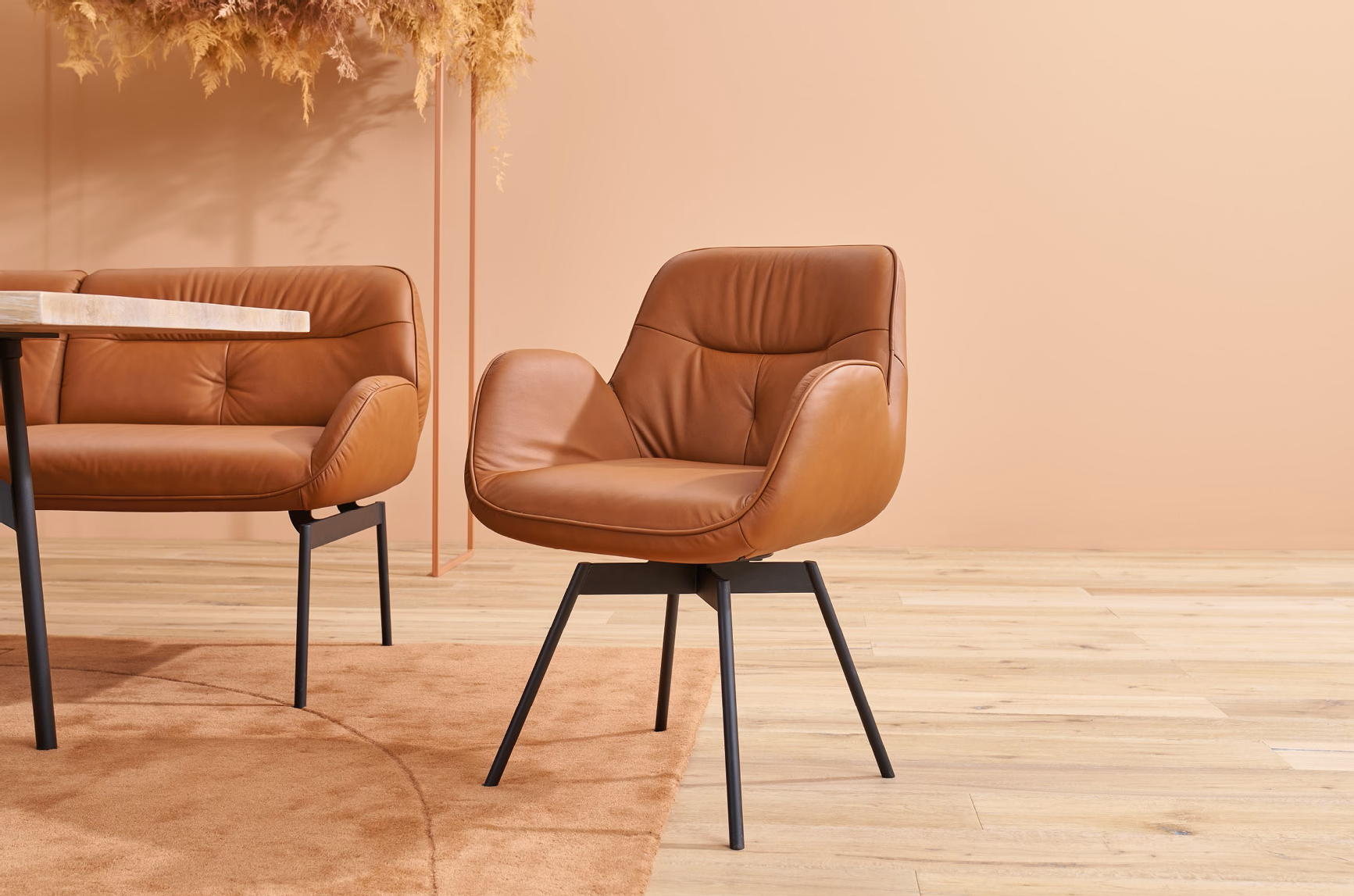 Обеденный стул DINING 1473 с основанием из окрашенного в черный цвет бука или с особо прочным металлическим каркасом с порошковым покрытием антрацитового или бежевого цвета. Опционально функция возврата стула в исходное положение. Конструкция в форме раковины обеспечивает исключительный комфорт и прекрасный, современный внешний вид. Дизайн является результатом комплексного подхода, который создает визуальную связь между мягкой мебелью в гостиной и обеденной зонах.