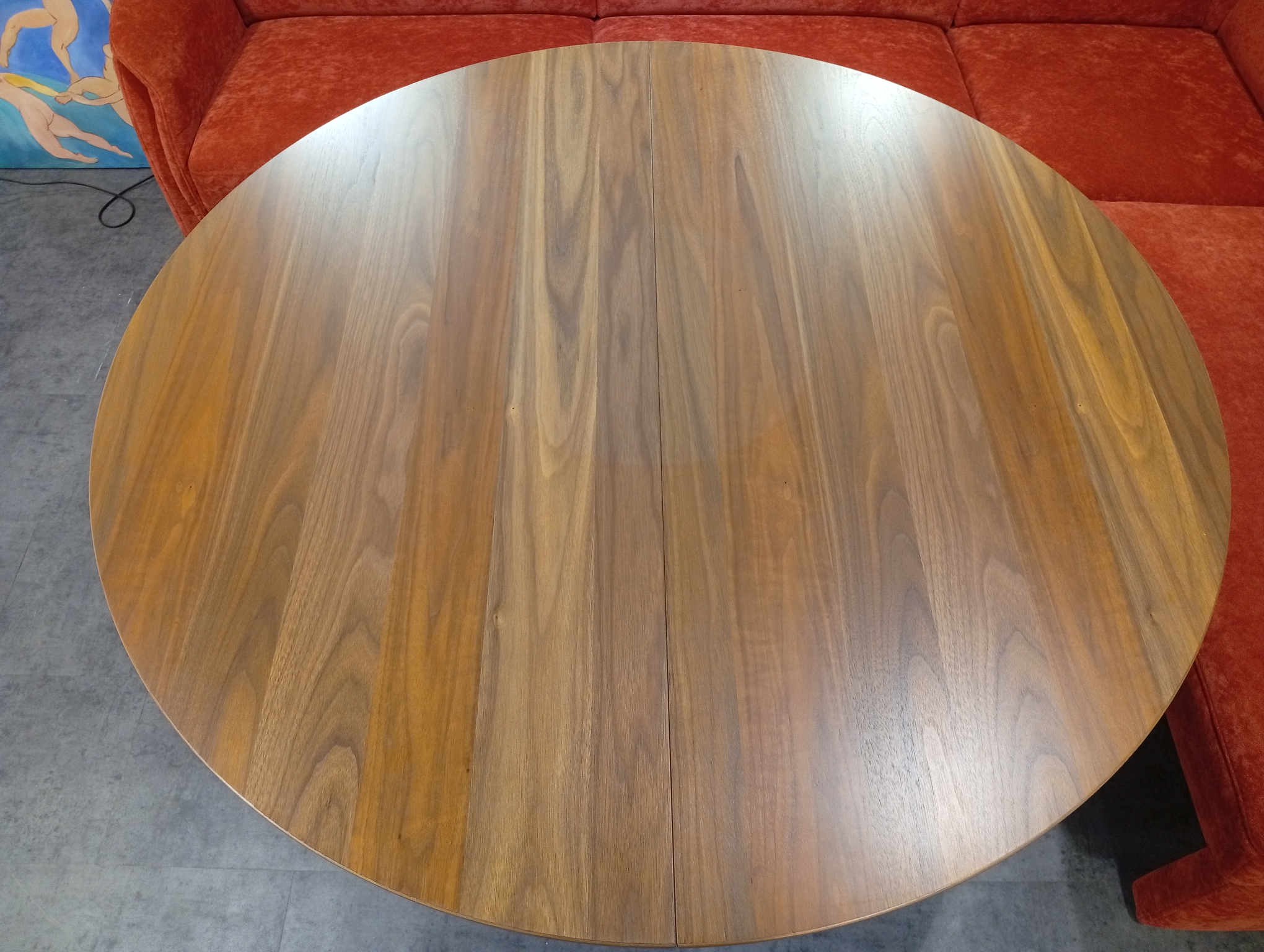 DINNER от HIMOLLA: угловой диван и кресло в ткани, круглый/овальный стол массив и шпон ореха. Диван с выдвижным сиденьем для увеличения глубины; две спинки с изменением угла наклона; в сиденье есть отделение для хранения. Диаметр столешницы 120см + дополнительная вставка 45см. Габаритные размеры дивана: 234х184см.